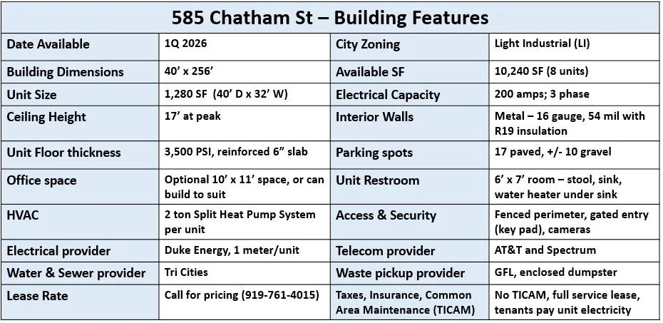 Includes 17 paved parking spots and turnaround, enclosed fencing around site perimeter, and sliding gate access via key pad entry